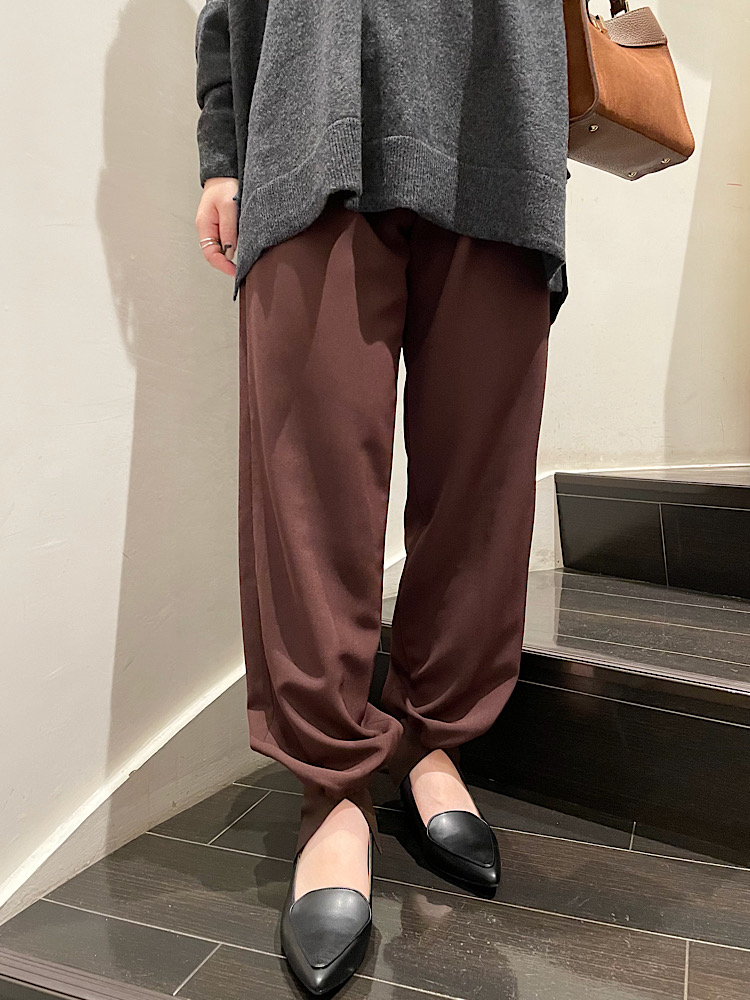 商品紹介:裾のスリットのデザインが可愛いパンツです。パンプスと合わせてもフラットと合わせても可愛いです。ワンピースの下に履いても裾にデザインがあるのでレイヤードしても可愛いです。