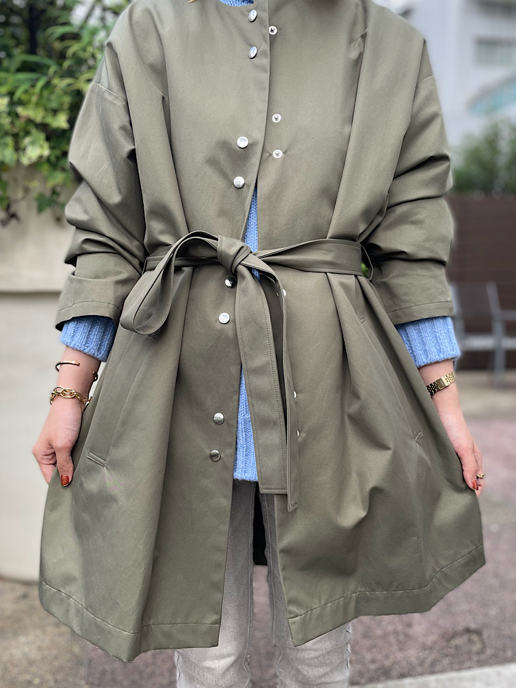 コートの腰部分を縛り、スッキリと綺麗めカジュアルにまとめました。