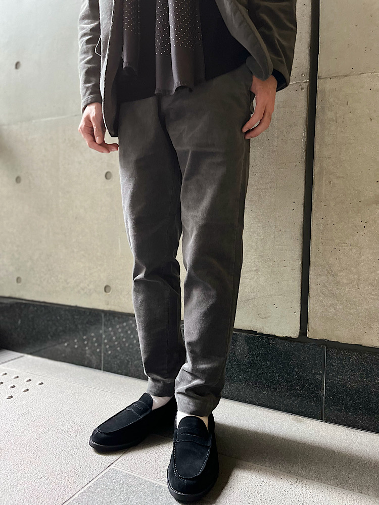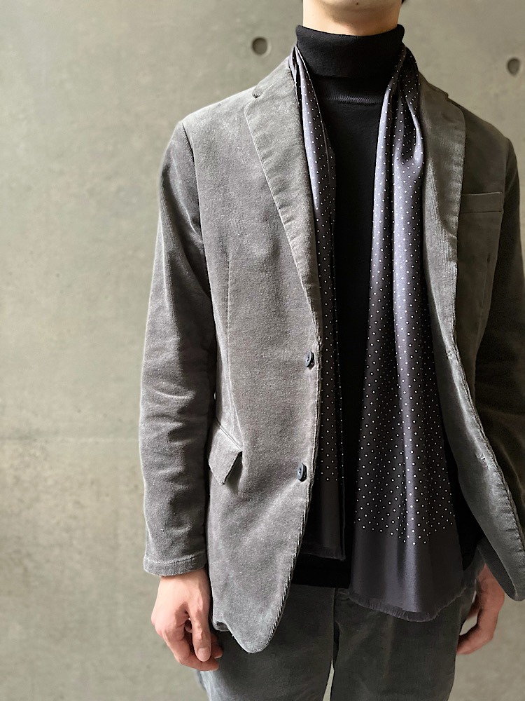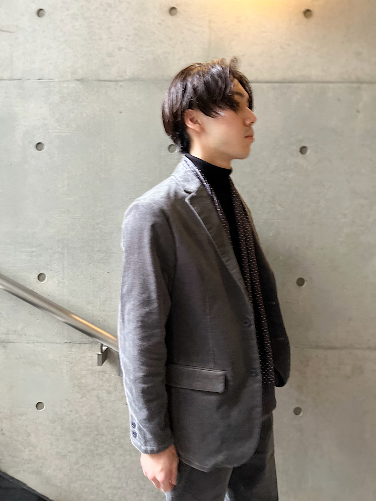 サイズ感:ジャストのサイズ感です。厚めのニット等を着込まれる場合はワンサイズ上げられてもいいかもしれません!