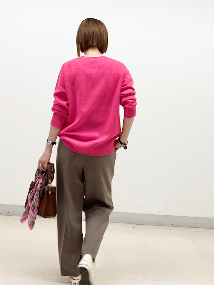 素材感・着心地:薄手でとろみのある素材。ウールっぽくはないが、これからの季節でも寒々しく見えない。さらっとしており、着心地は抜群。