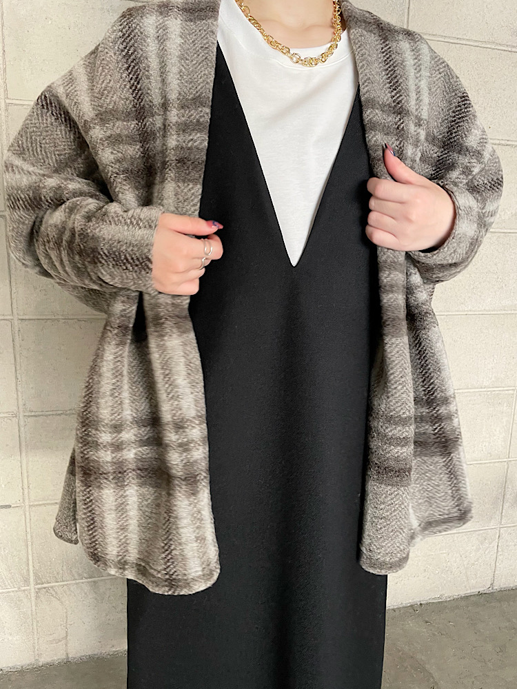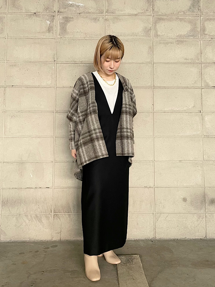 商品紹介:首元のVが深めなので顔周りがスッキリ見え、中のレイヤードも楽しめる1枚です。カジュアルにカットソーと合わせてもいいですし、タートルネックなど冬らしいアイテムとも相性がいいです。