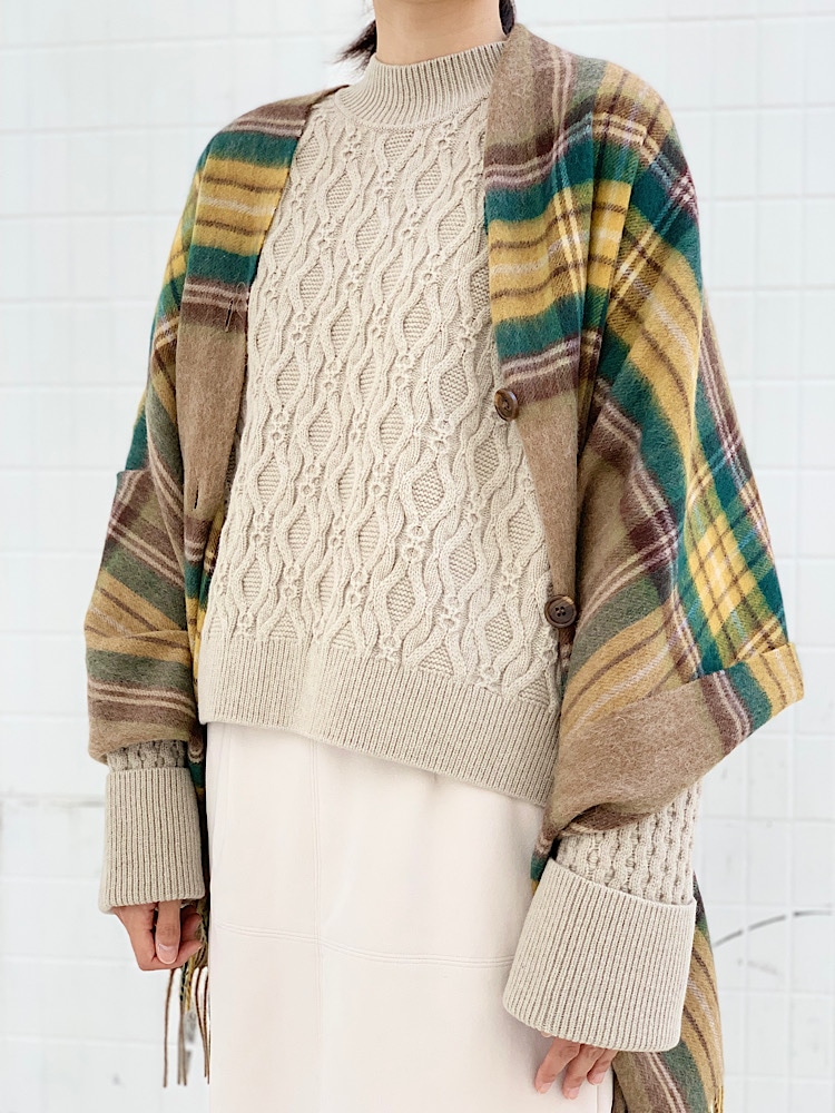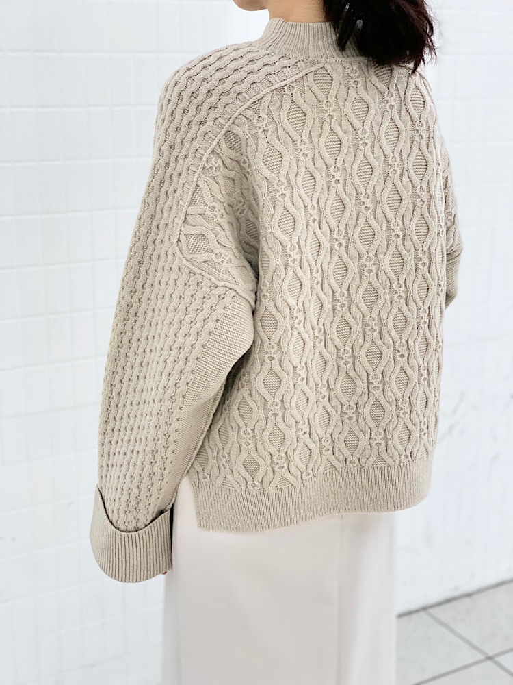 ざっくりと編まれたケーブルニットですが、厚すぎずほどよいです。