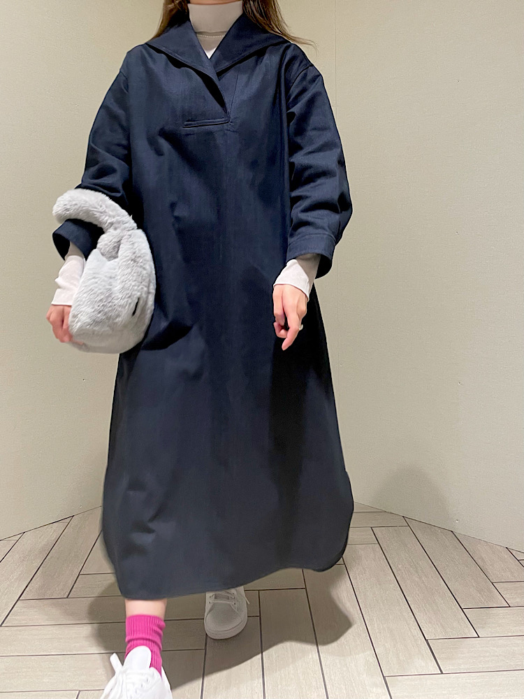 サイズ感:しっかり着丈があるので、高身長の方でも一枚で着用できます。