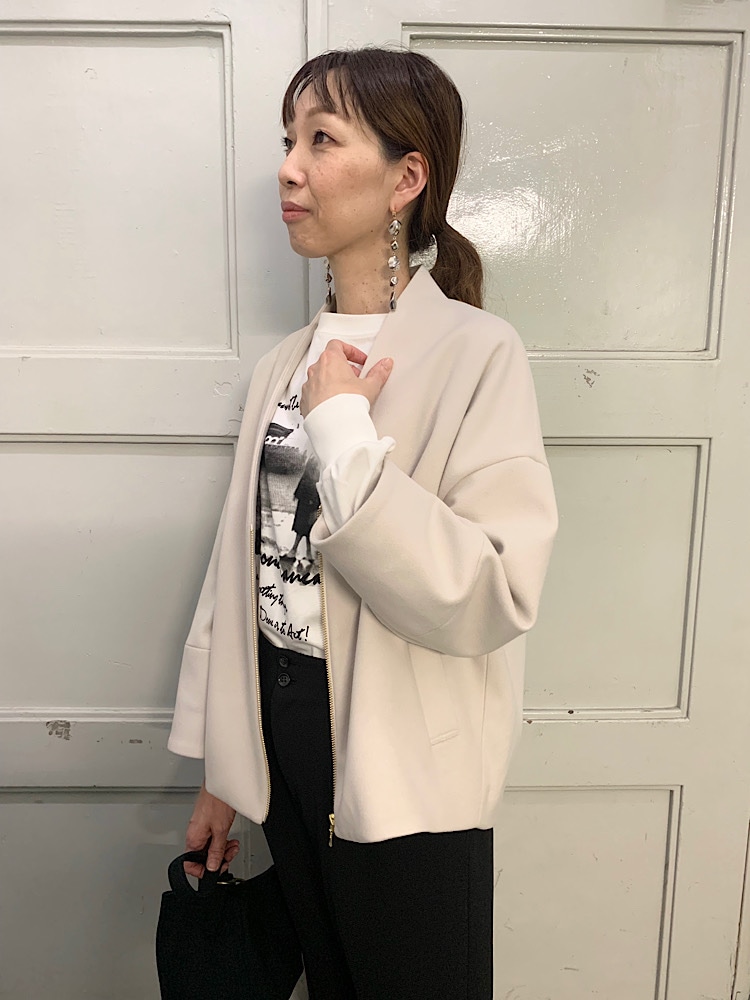 素材感・着心地:ポリエステル/レーヨン素材で、裏地がついていますが、軽くて羽織りやすいです。