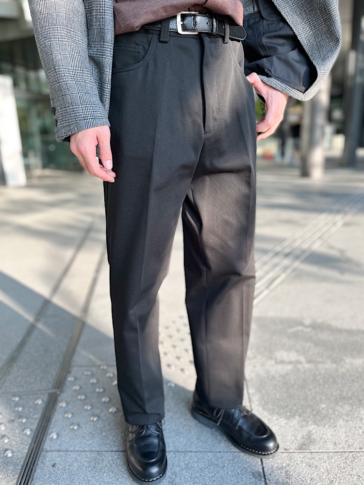 サイズ感:ウエストはややゆとりがあり、丈はお直しが必要です。ハリのあるコットン素材で、通年はいていただけます。太過ぎず細過ぎない絶妙なシルエット。