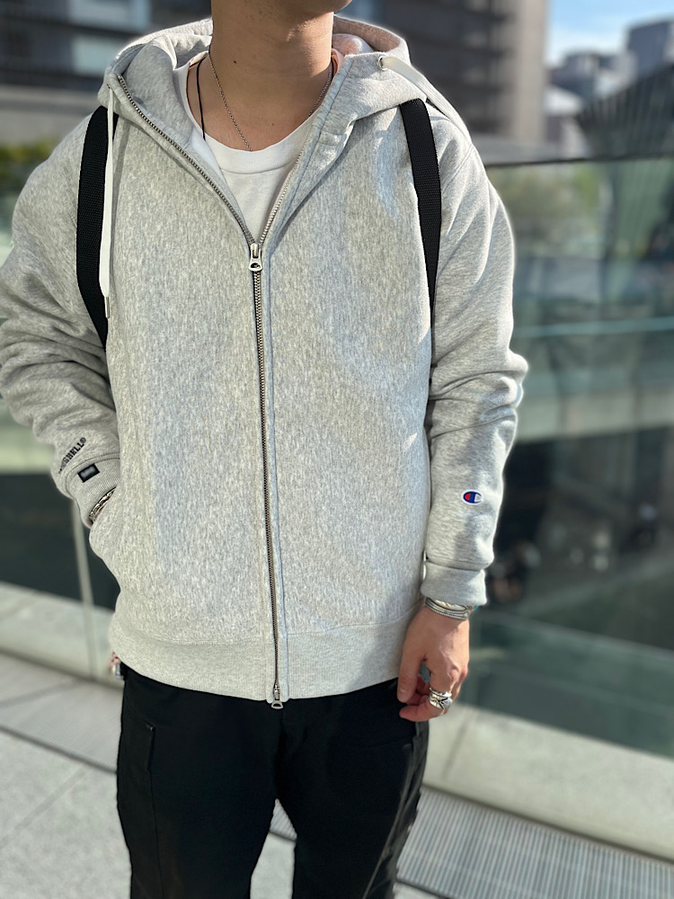 〈SHIPS別注 championパーカー〉を使用したスポーティなスタイリング