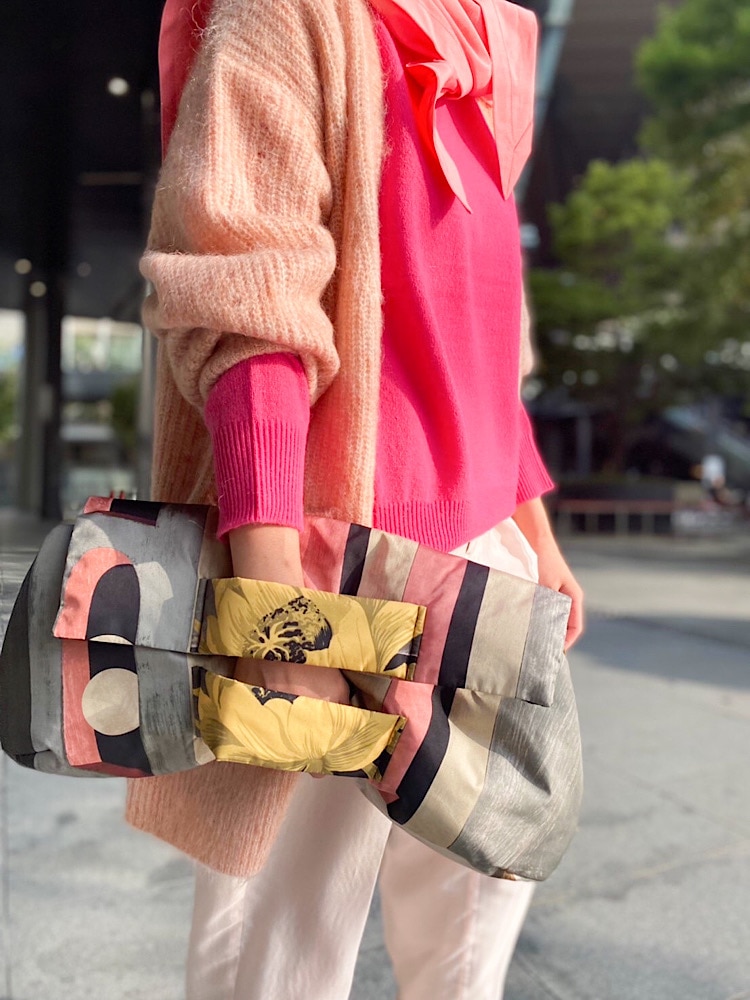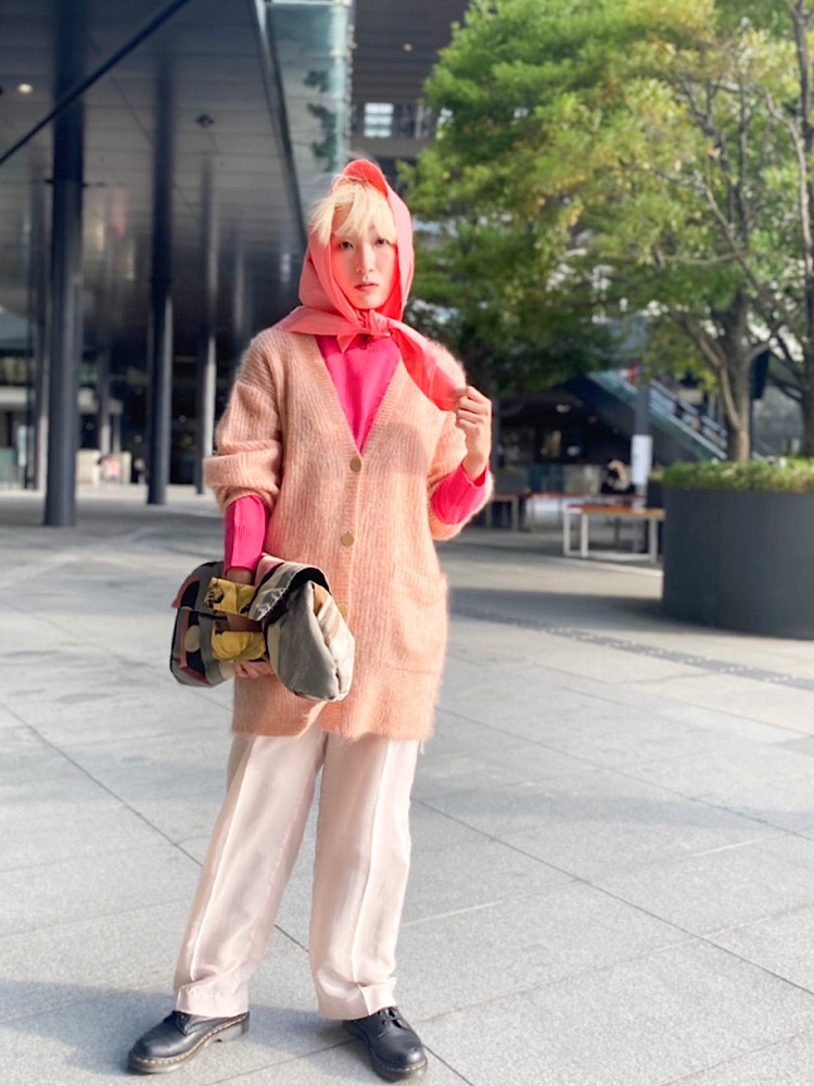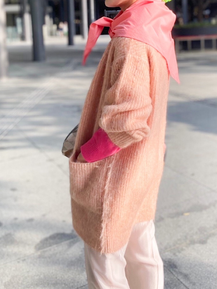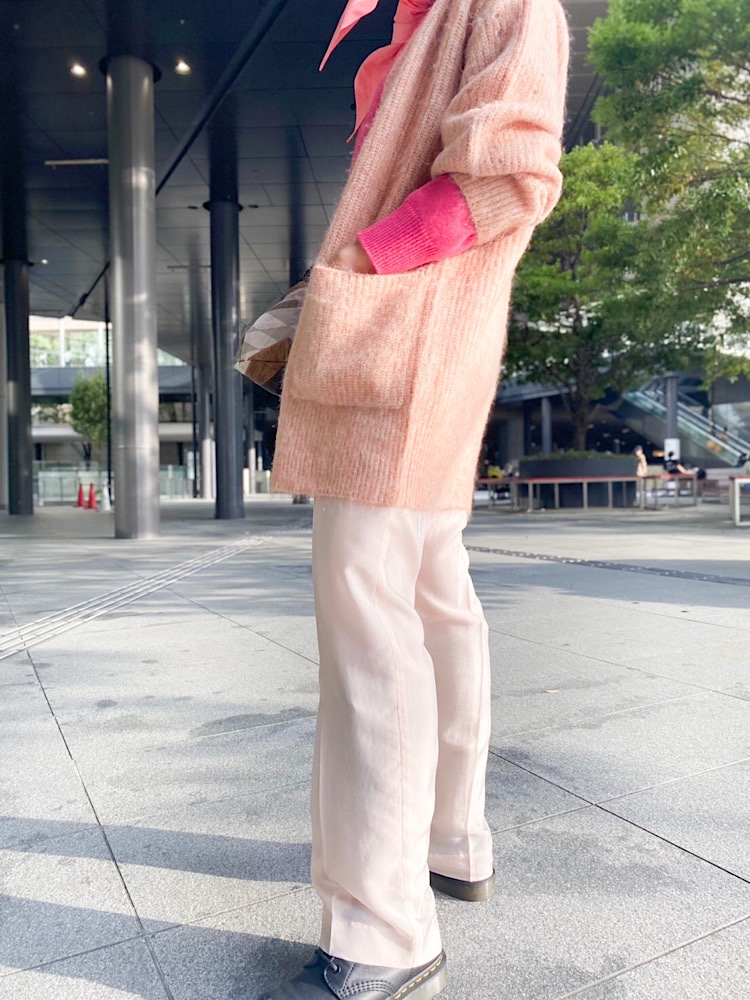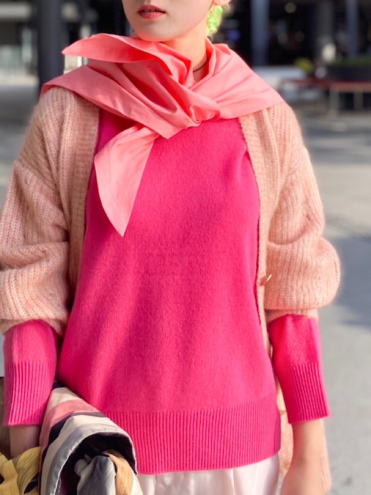 着こなしポイント: 発色の良いピンクなので、チャレンジカラーという方は羽織りものを