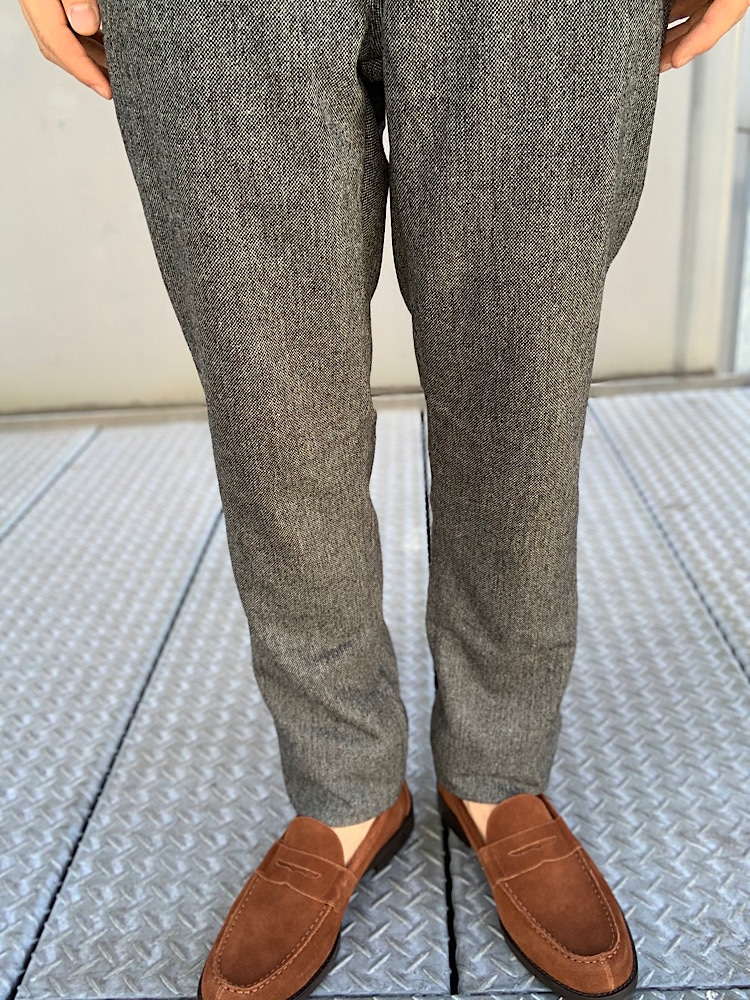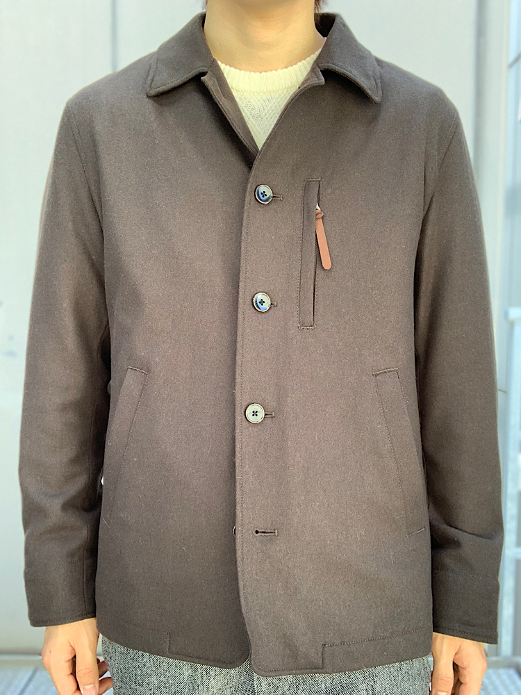 素材感:光沢感と軽量感をミックスさせた特殊紡績のウール生地。