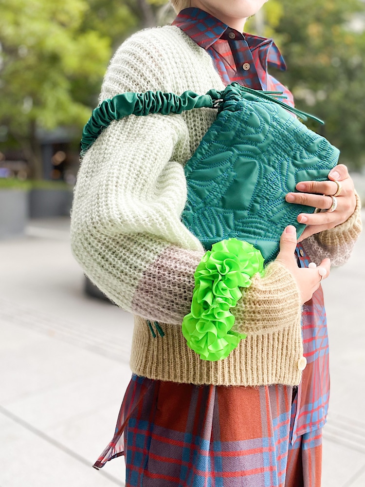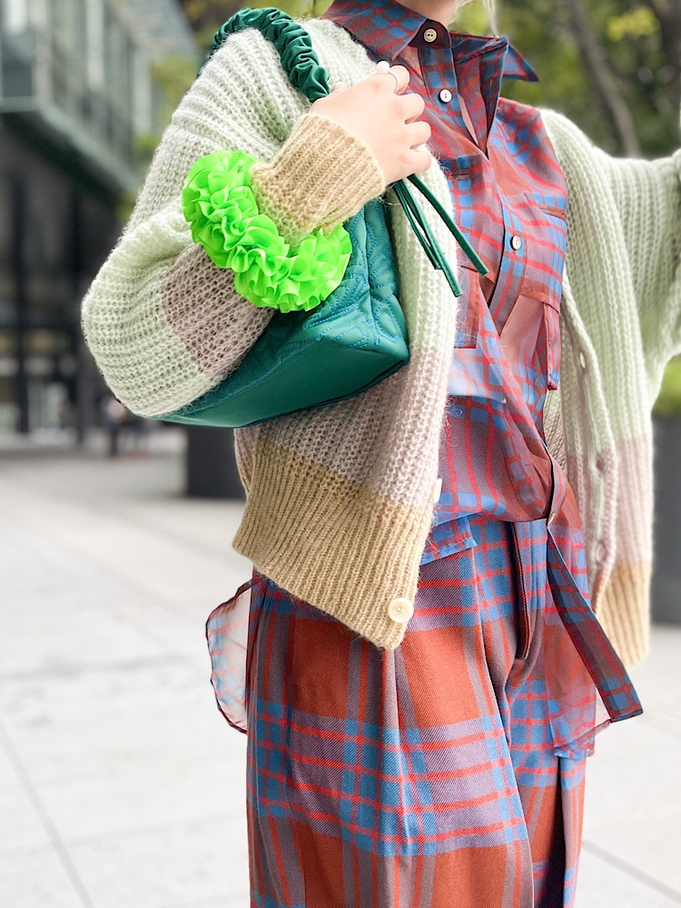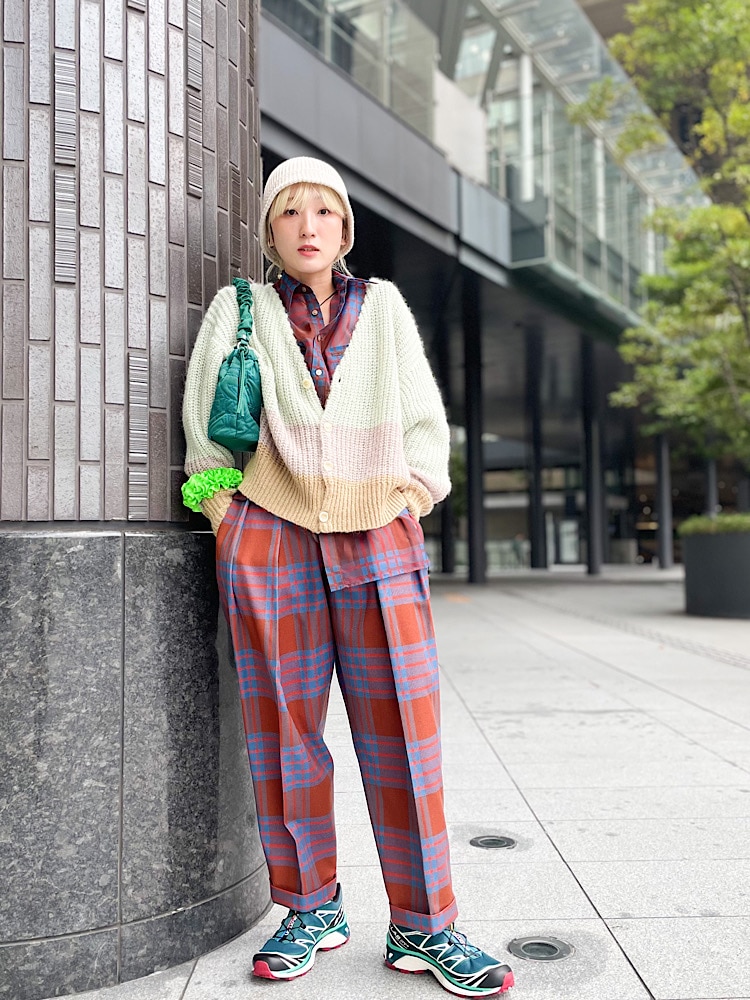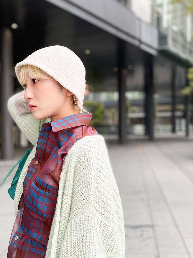 着こなしポイント: 前を閉めて頂くと、よりすっきりしたスタイリングになります