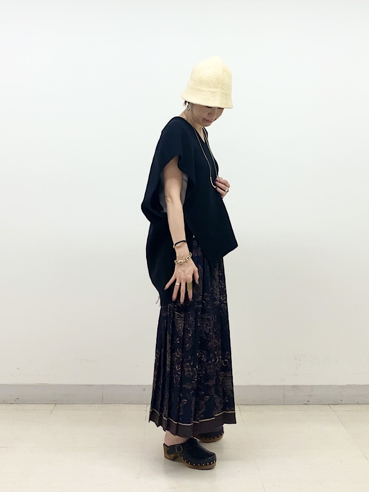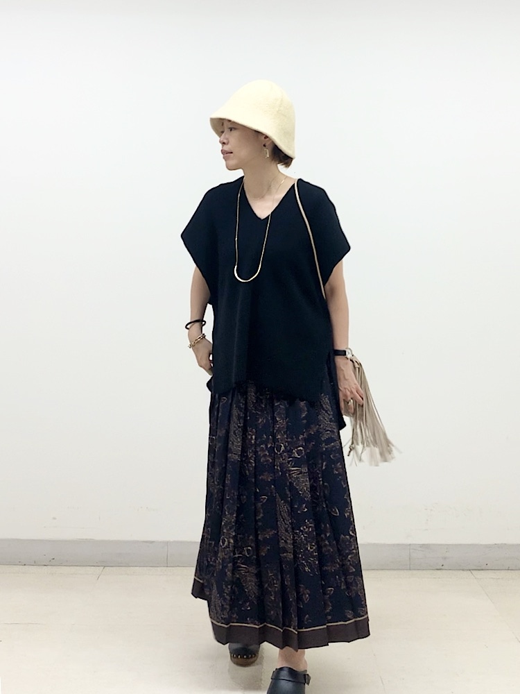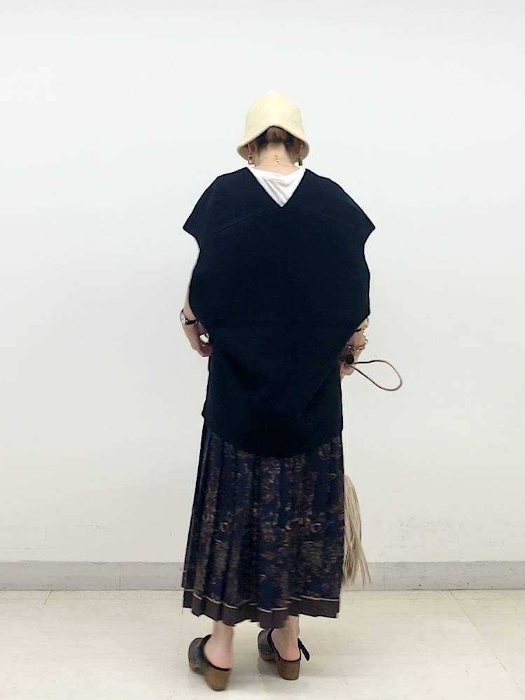 ウールのニットベストを半袖で着る、この時期ならではの楽しみ方を。