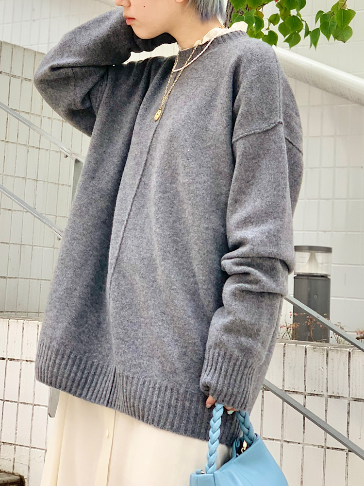 メンズライクなニットにワンピースをレイヤードしてバランスよく。