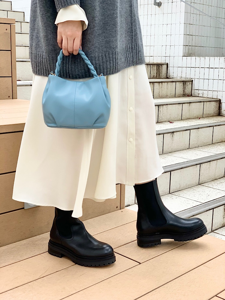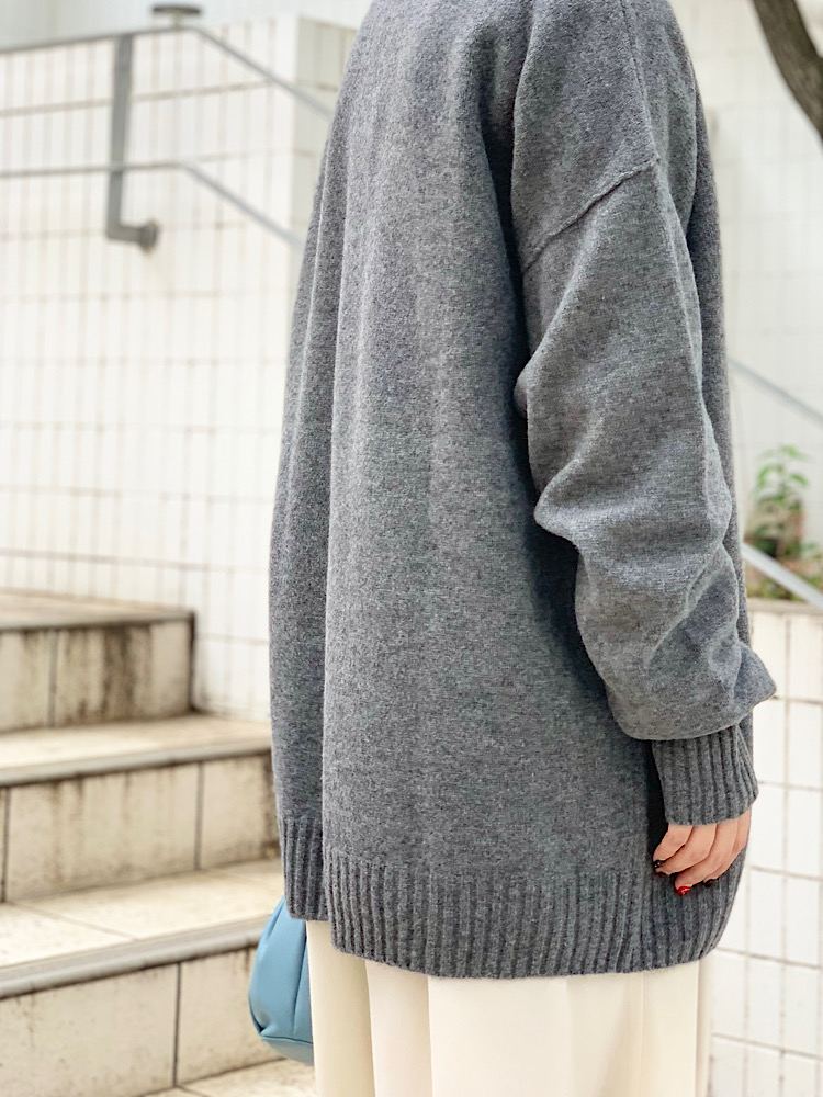 ゆったりしたサイズ感で丈感はふくらはぎくらいです。