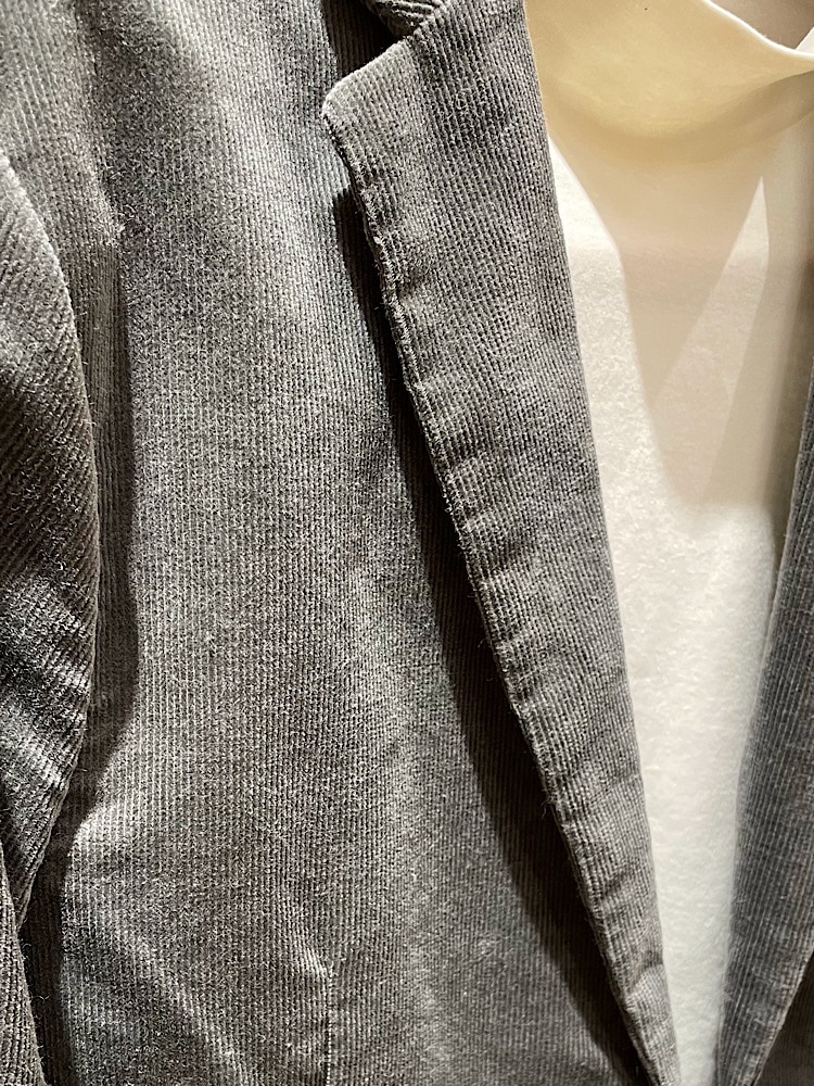 素材感/着心地:細畝のコーデュロイでストレッチが効いていて動き易い。