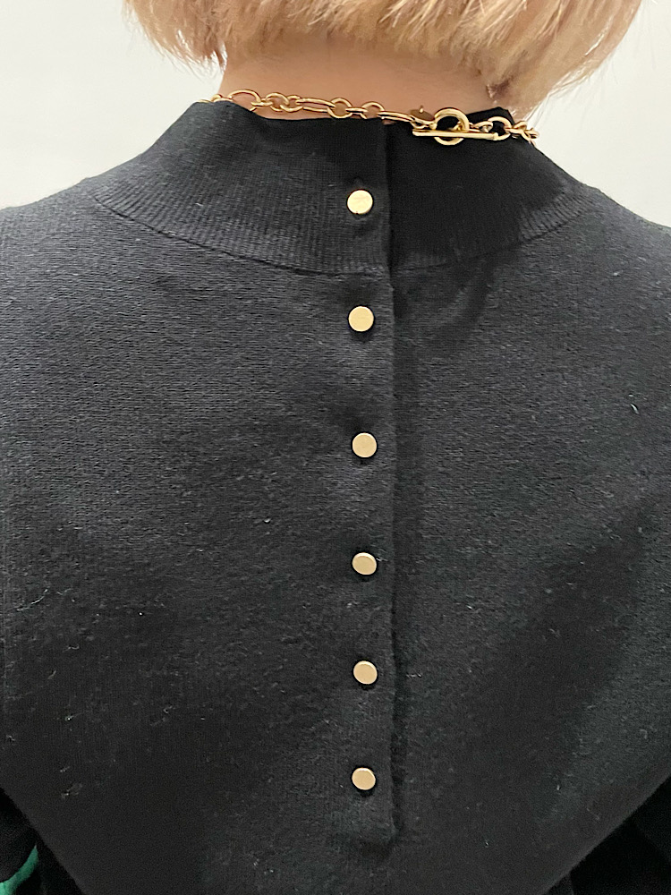 商品紹介:肩の部分が少し膨らんだデザインになっています。膨らみすぎていないので華奢見えする1枚です。生地感も柔らかくチクチクしないので肌が弱い方でも安心して着ていただけます。後ろのボタンがアクセントになっていて可愛いです。