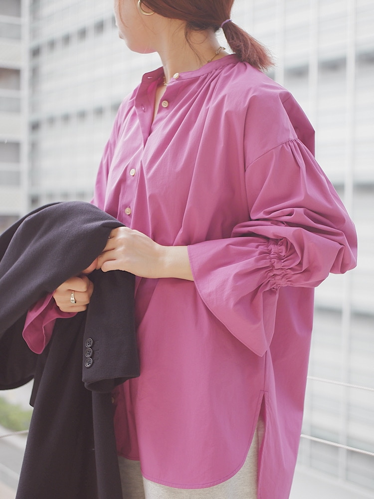 ◆ソリッドギャザースリーブブラウス