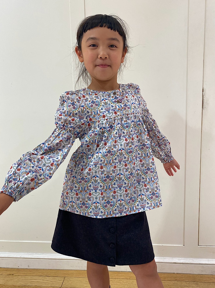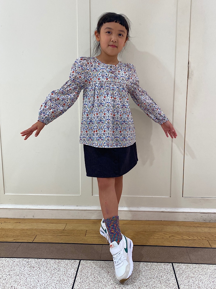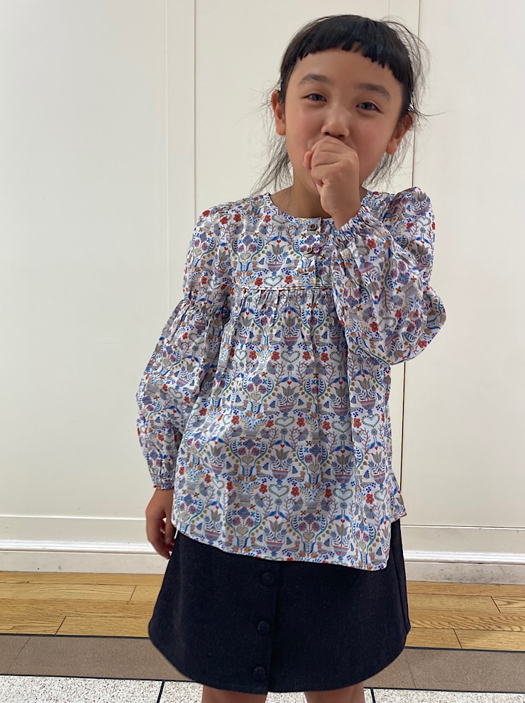 リバティのシーズン柄のブラウスは袖のデザインがとってもかわいいです💕 ブラウス130センチ着用 キュロット140センチ着用