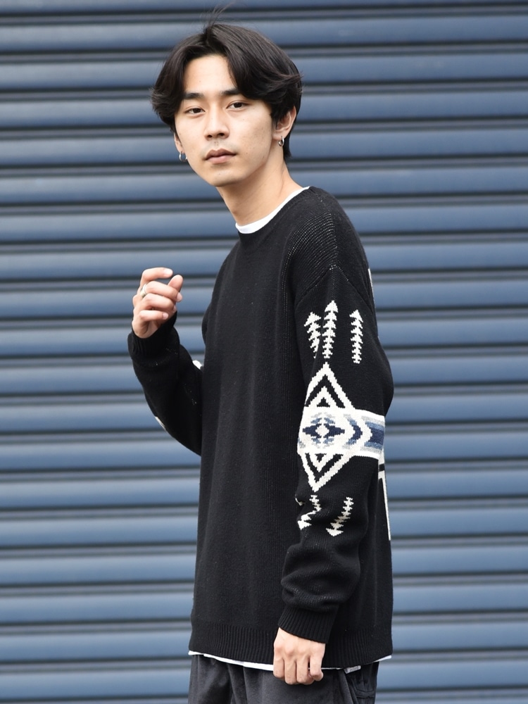 身長:177cm/体重:53kg/体型:やせ型/普段サイズ:M/着用サイズ:L