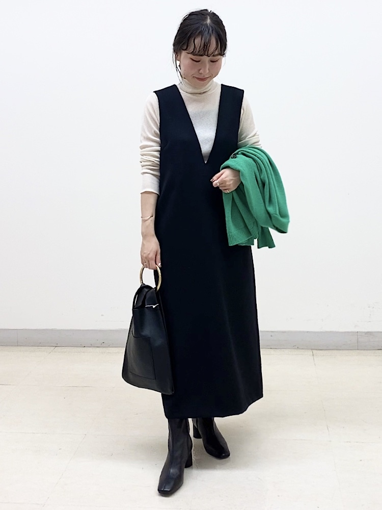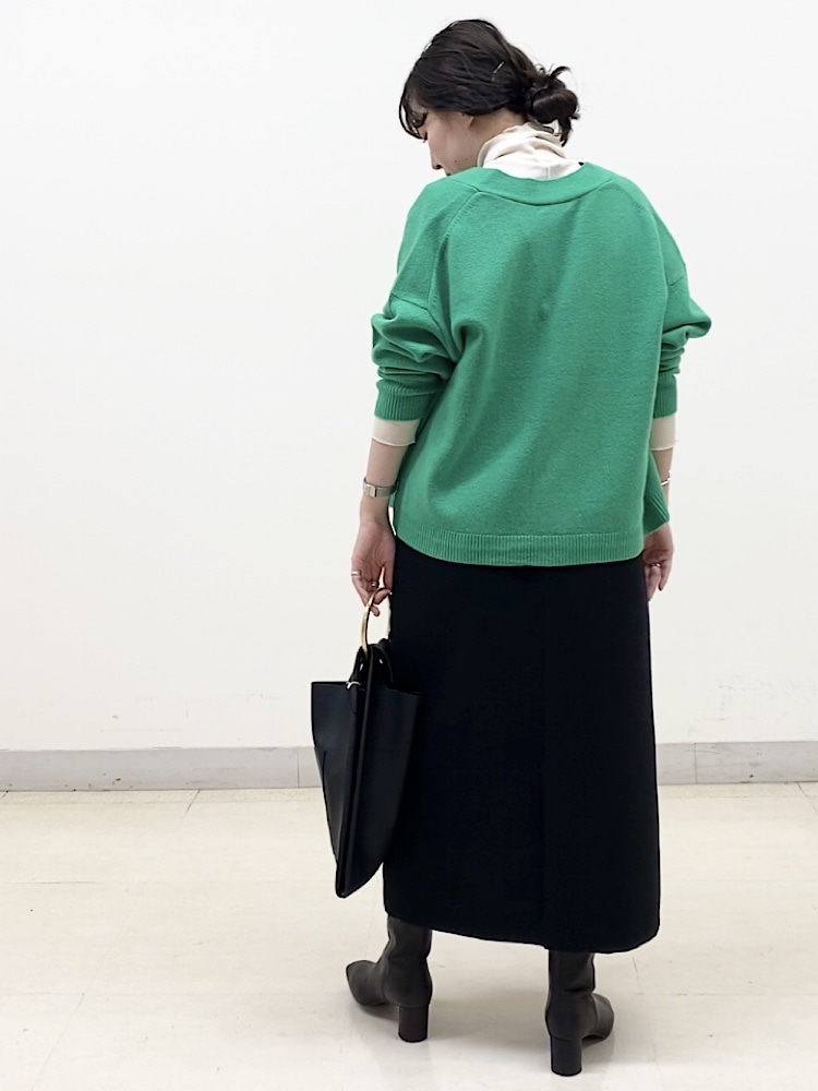 素材感・着心地:ウールとカシミヤ素材で暖かい。生地が柔らかいので着やすい。アウターもしっかり羽織れる厚み。