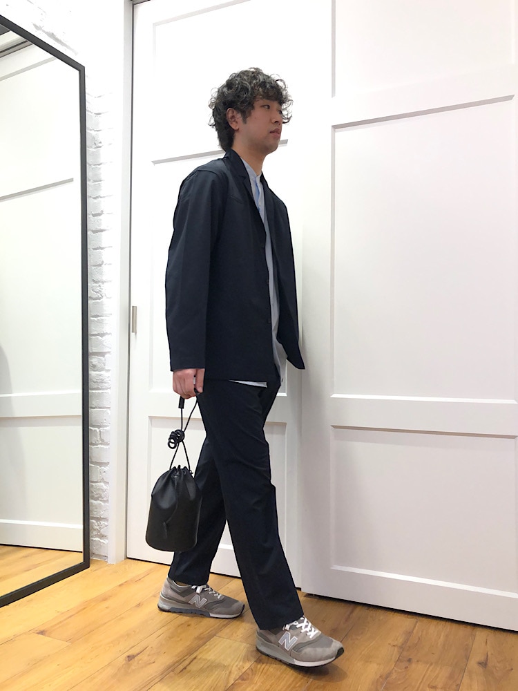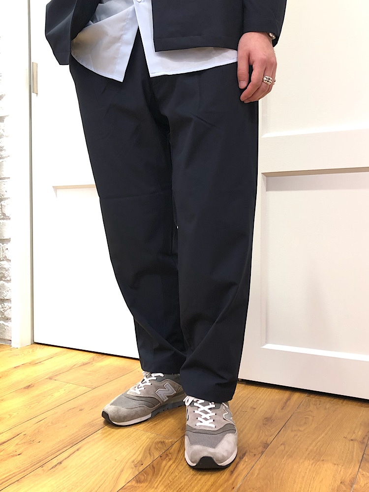 素材感:ストレッチ性があり、ストレス無く着ていただけます。生地も薄過ぎないので、寒くなってきた際はスウェットや薄手のニットを合わせても◎