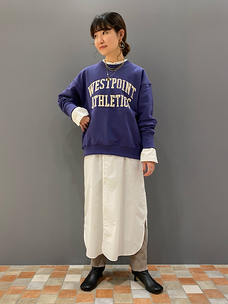 カジュアルすぎるスタイリングが苦手な方は、ワンピースとのレイヤードや、落ち感のあるスカートとの合わせがおすすめです!