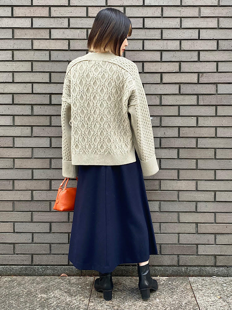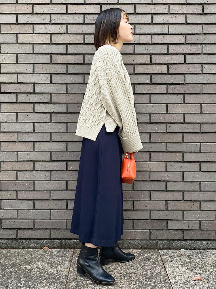 ざっくりしたシルエットなので、ボトムはすっきりしたもの