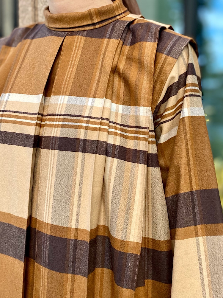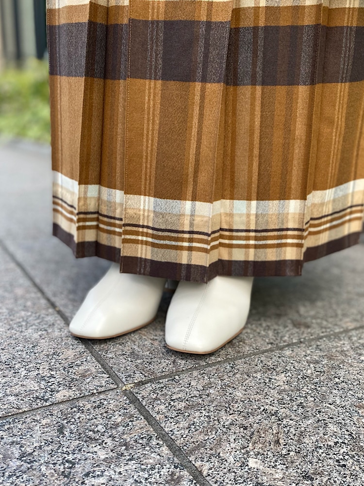 【素材感・着心地】ウール100%ですがなめらかで着心地が良いです。プリーツがしっかり入り、張り感もあるので1枚で見栄えしてくれます。