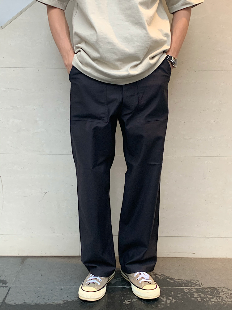 【素材感・着心地】光沢感のあるスビンコットンのウェポン素材なのでカジュアルにも綺麗目にも履けます!