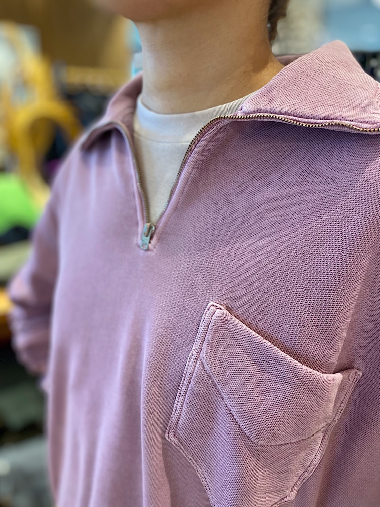 【素材感・着心地】綿100%。首元のジップを閉めて着ても◎