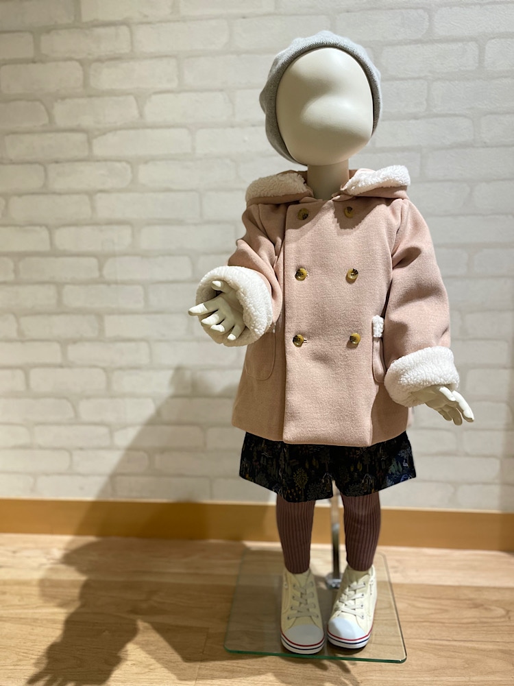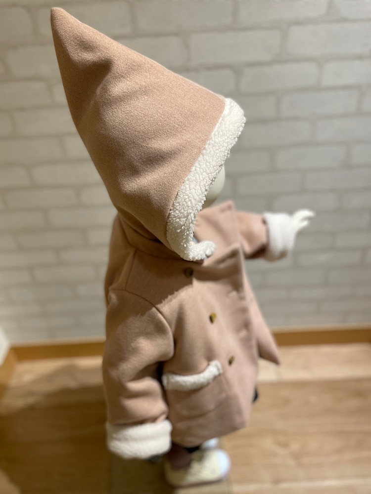三角フードがかわいいベビーアウターです。 フードは取り外しが可能です。