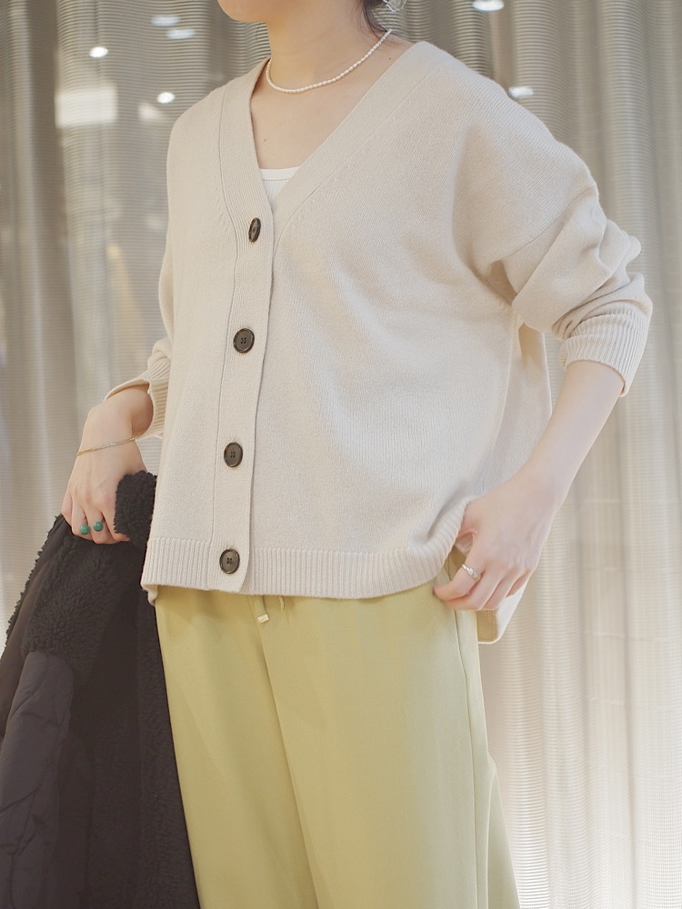 中肉な厚みなのでアウターにも響かず合わせやすい一枚です。
