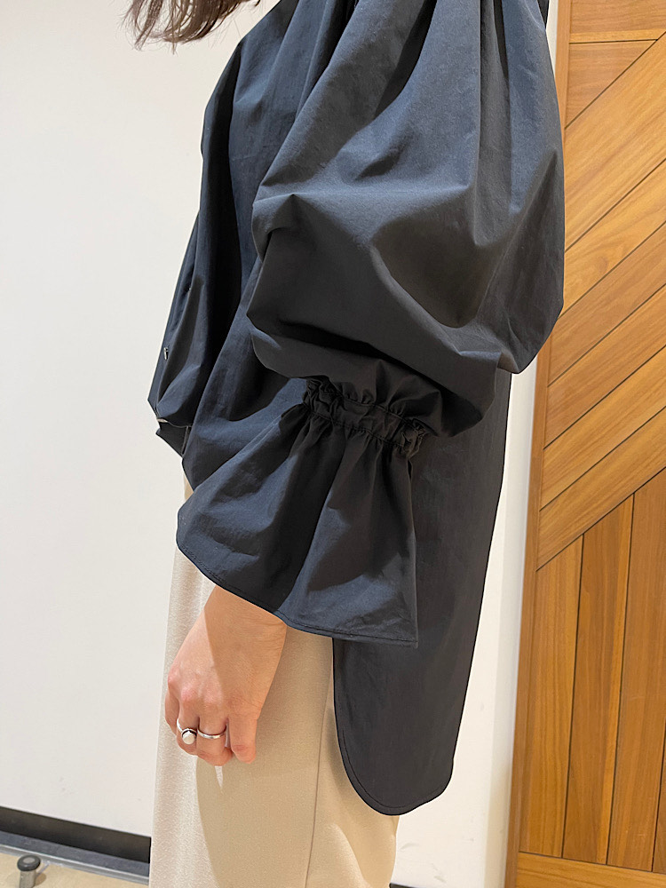 素材感・着心地:ハリのある素材で、袖のボリューム感がポイントになります。