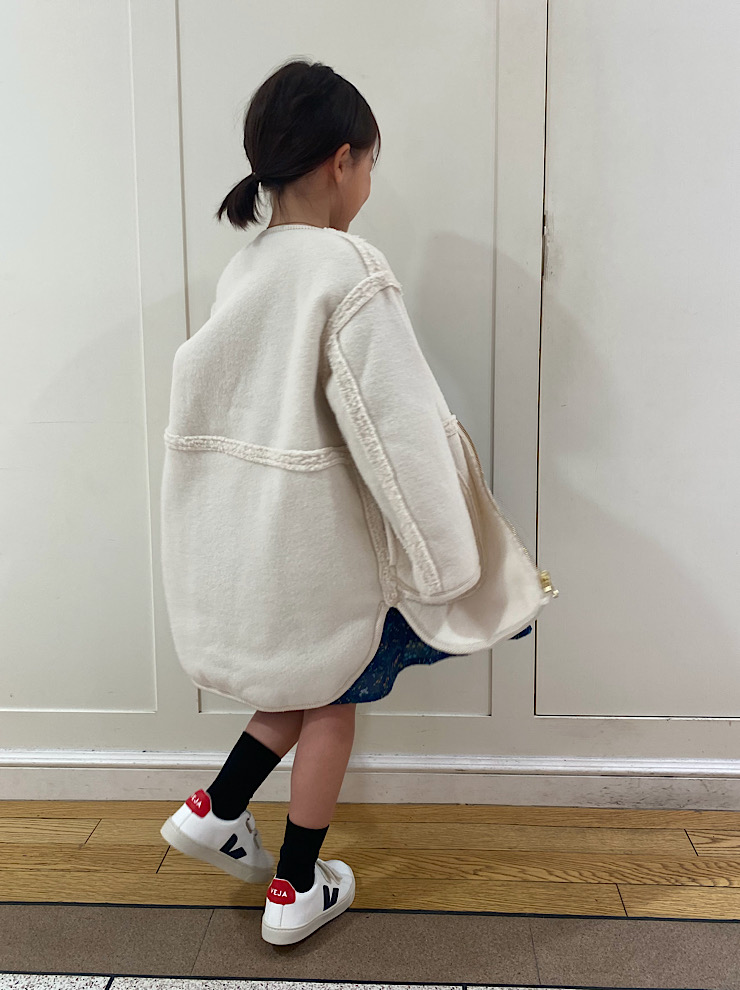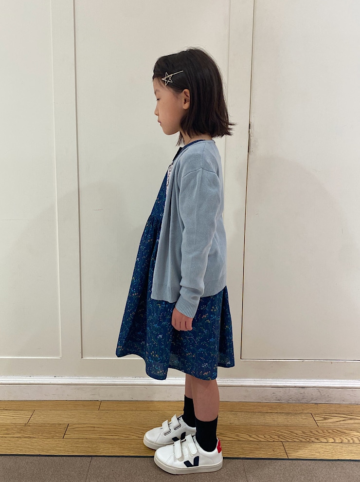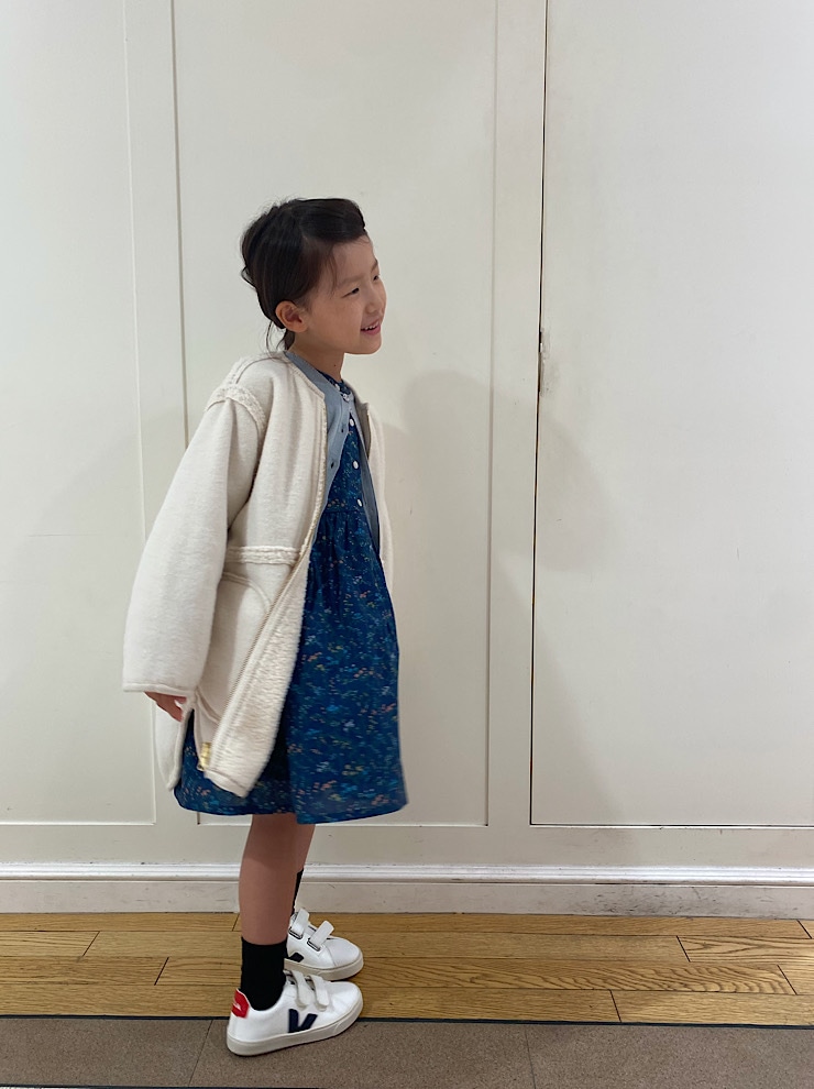 品の良いLIBERTYワンピースもスニーカーを合わせるとカジュアルに楽しめます。 リバーシブルのボアアウターはランドセルも背負いやすく、通学用にも人気です! 寒くなってきたらインナーダウンを重ねても◎ 身長118cmで、120cmを着用しています。