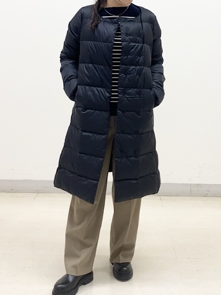 素材感・着心地:丈が膝まであるので、暖かいです。Aラインのシルエットでとても綺麗に着れる。