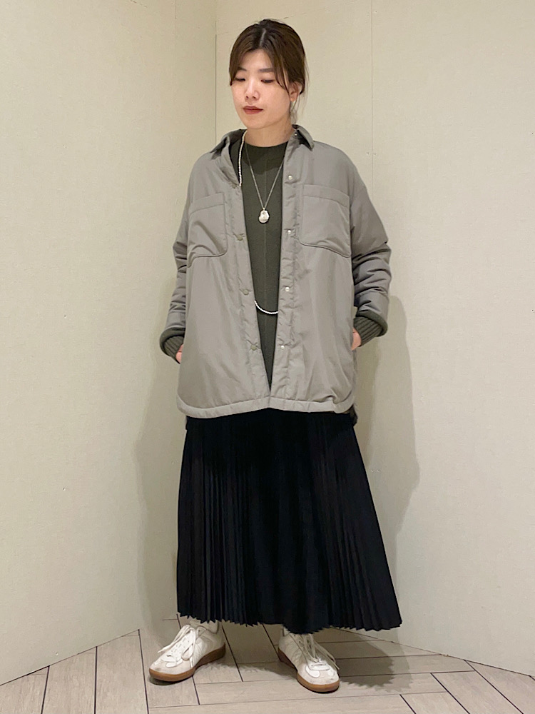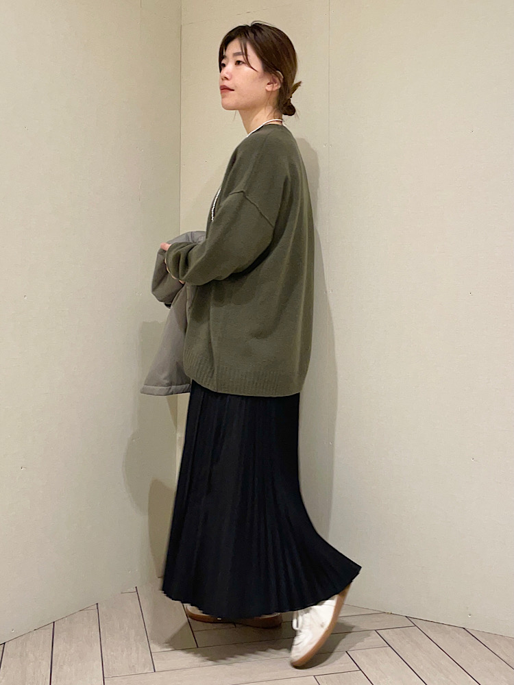 素材感・着心地:細かいプリーツで広がりにくく、ニットとの相性も抜群です◎