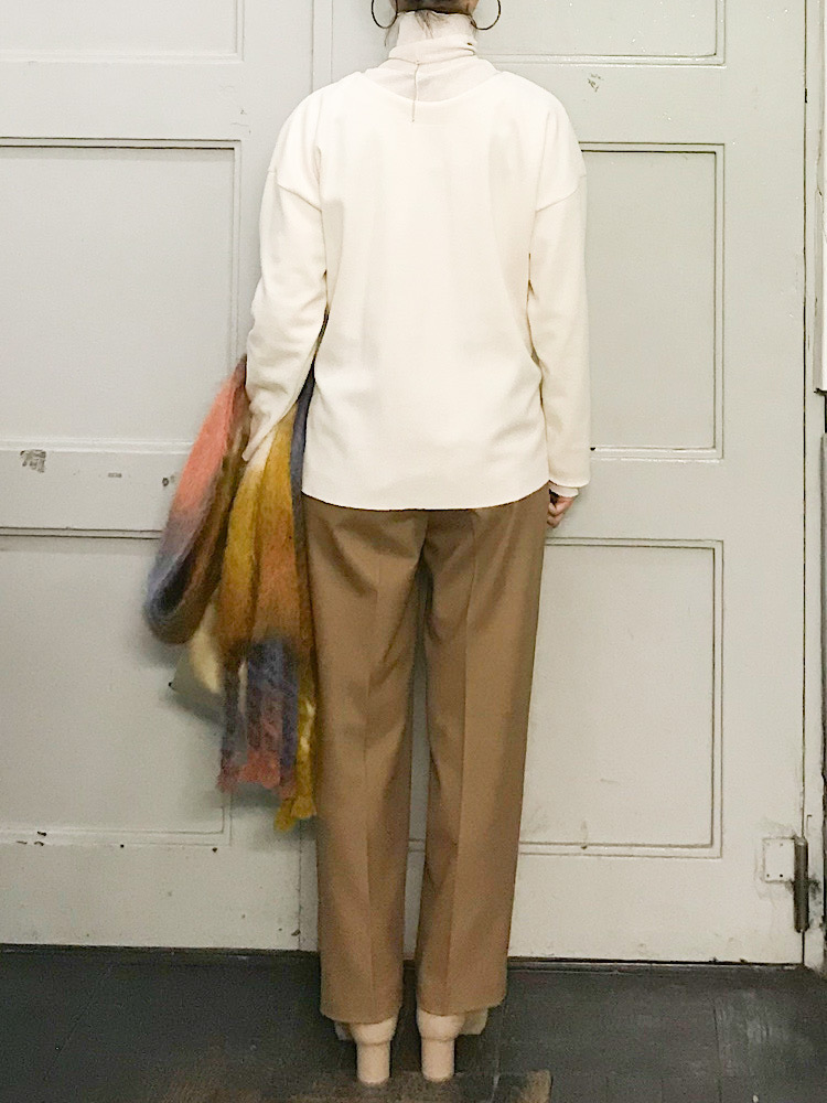 素材感・着心地:レーヨン、ポリエステルですがウールライクな生地感。柔らかく伸縮性がありストレスフリー。