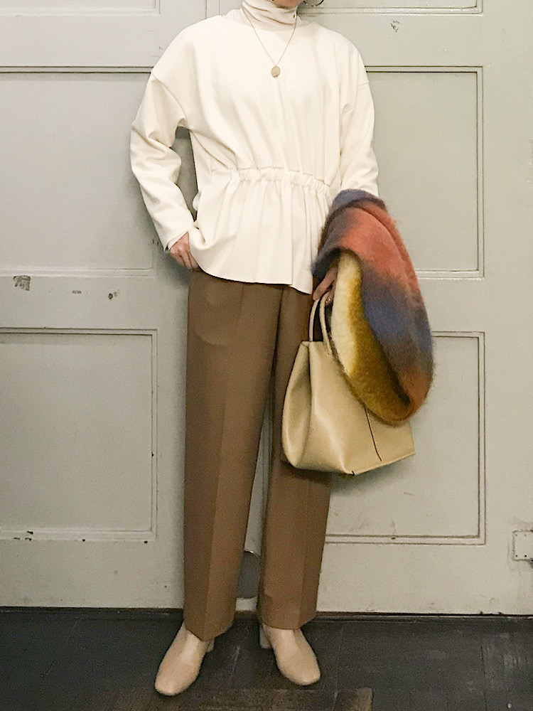 サイズ感:ウエストはゆったり。着丈は短めで踵がしっかり見えるくらいです。