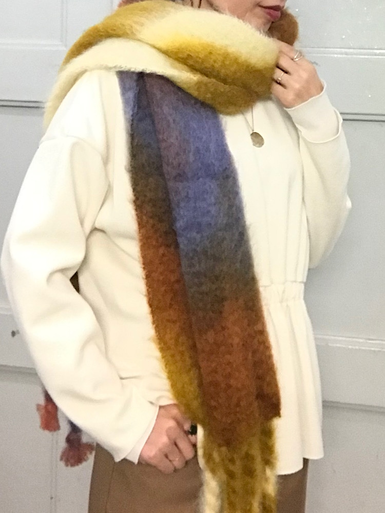 素材感・着心地:張りのある素材感。表地はブークレでポコポコした肌触りですが、裏地はサラッとしており着心地良いです。