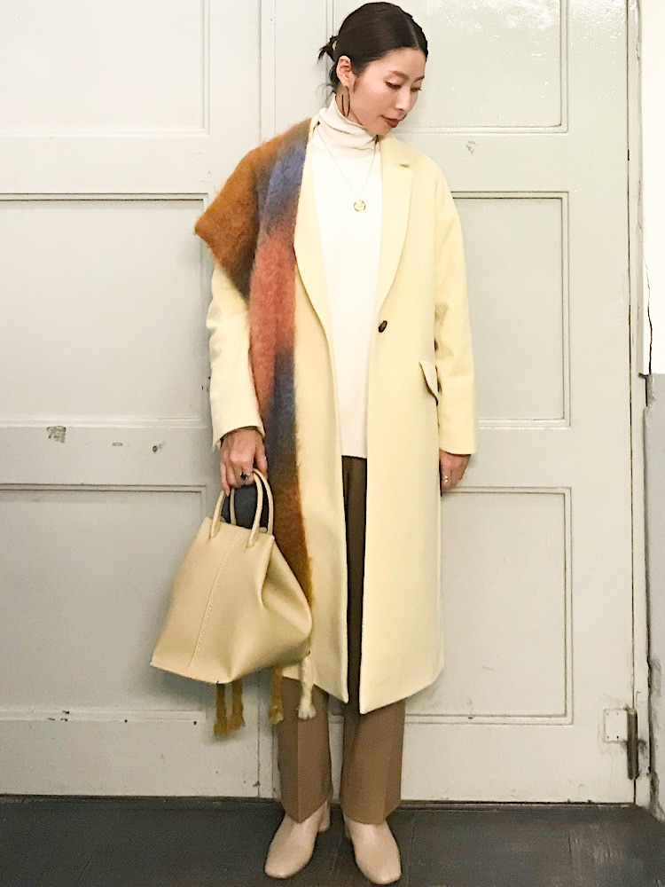 素材感・着心地:羊毛にカシミヤが少し入る事でしっとり滑らかな生地感。非常に軽いですが保温性に優れてます。