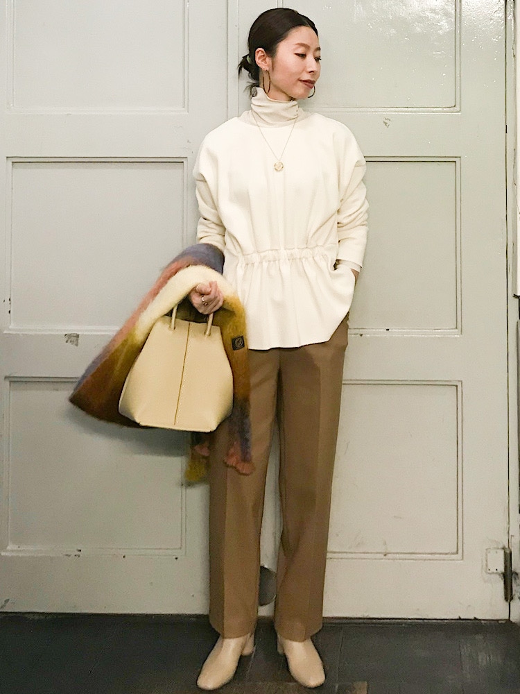 素材感・着心地:レーヨン、ポリエステルですがウールライクな生地感。柔らかく伸縮性がありストレスフリー。