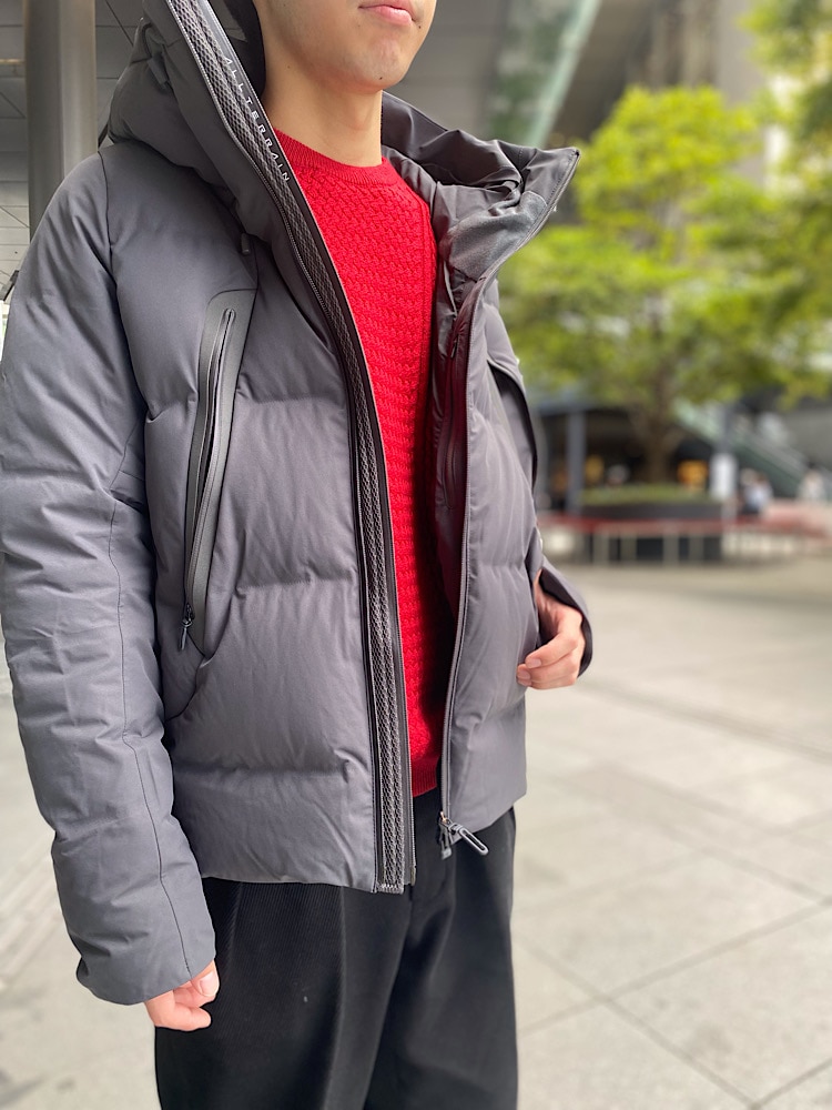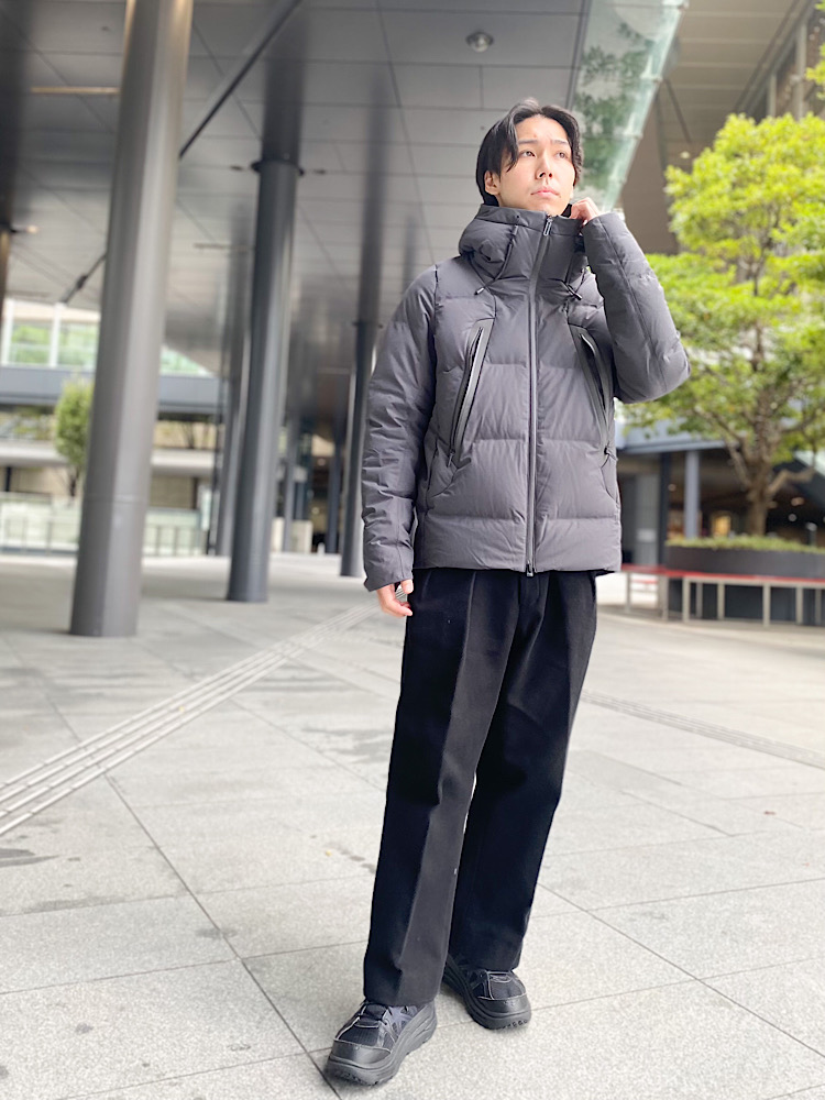 サイズ感:ワンサイズあげて着用。元々がスリムなシルエットの為、サイジングをあげてもシュッとまとまってくれます。