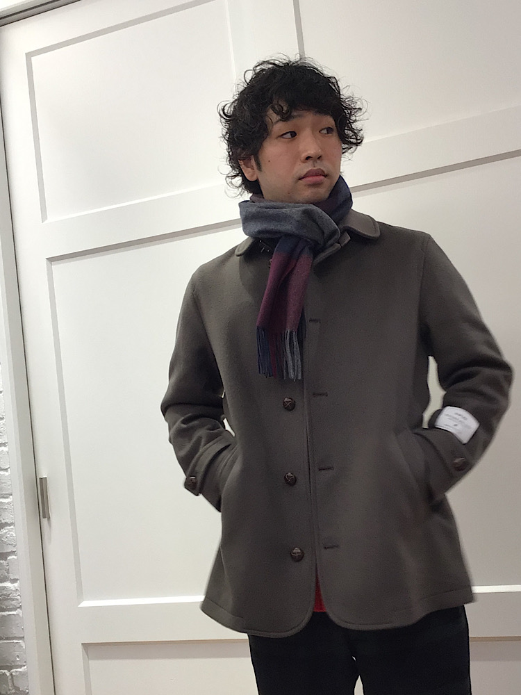 朝夕がだんだん寒くなり、めっきり秋らしくなりましたね。今回は昨年も好評だったシングルPコートにミドルゲージのタートルネックを合わせてアクセントにしました!