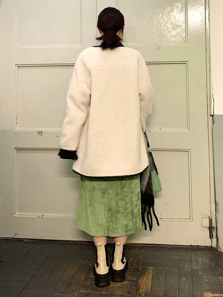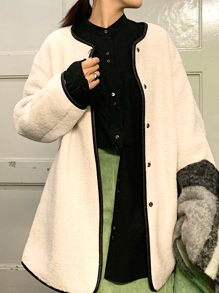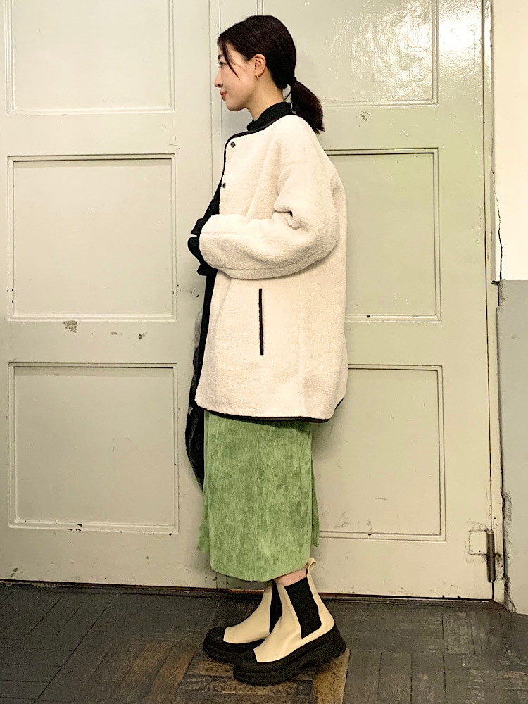素材感・着心地:毛足は短めのボア素材です。軽く袖幅もあるのでとても着やすいです。