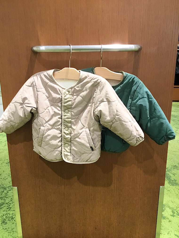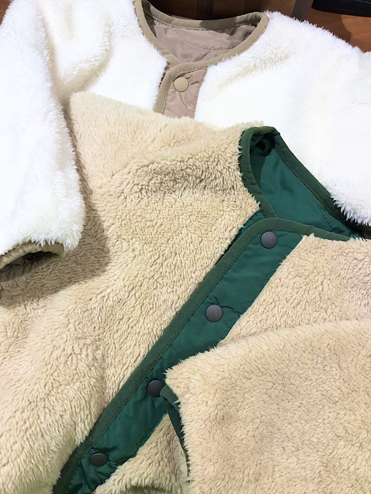 リバーシブルで着れるキルティング×ボアのアウターは軽くて温かいですよ。