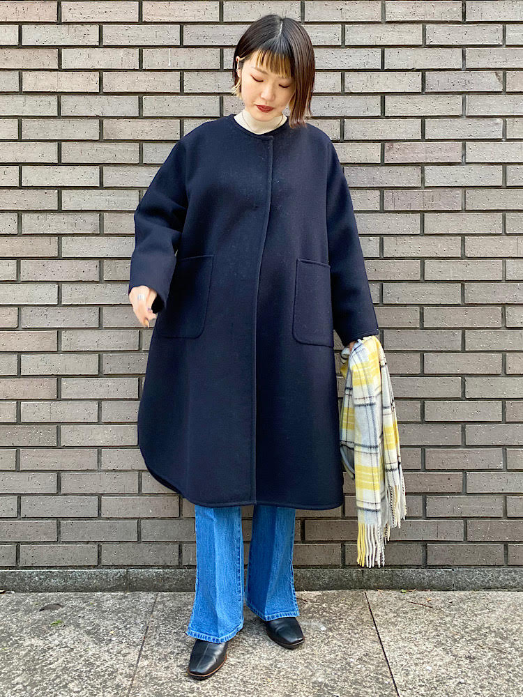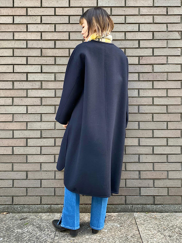 Aラインに広がるシルエットなので、すっきりしたボトムを