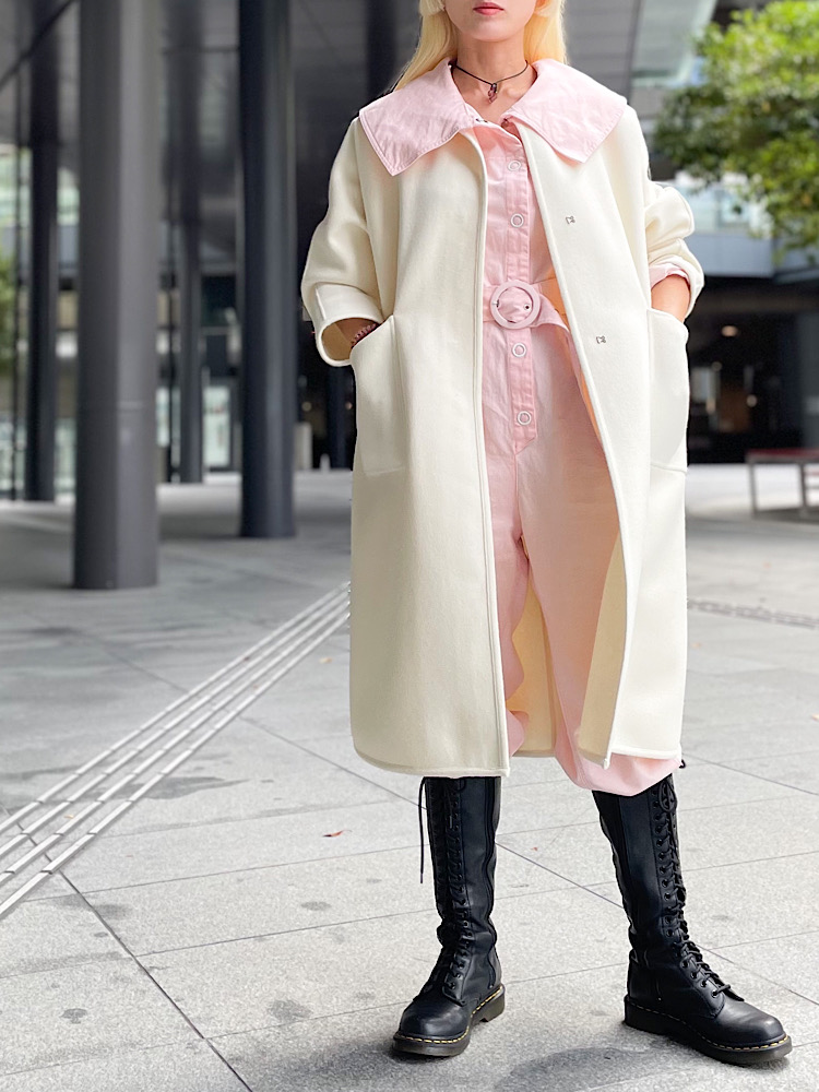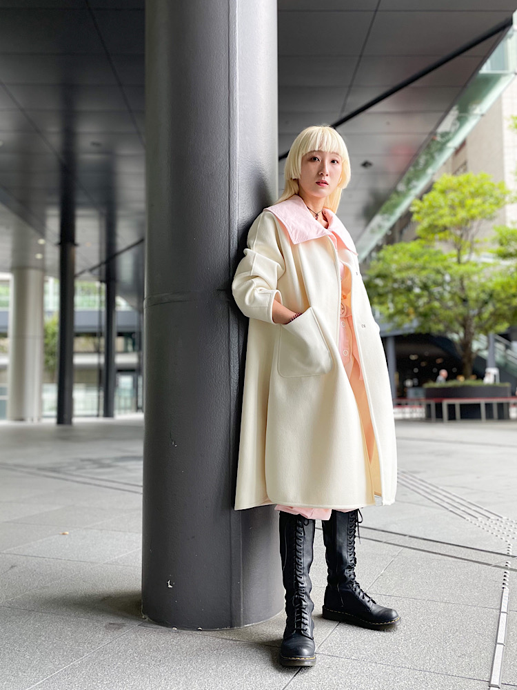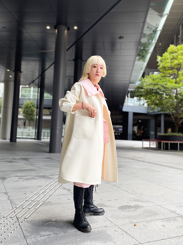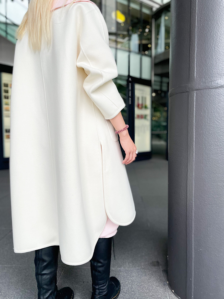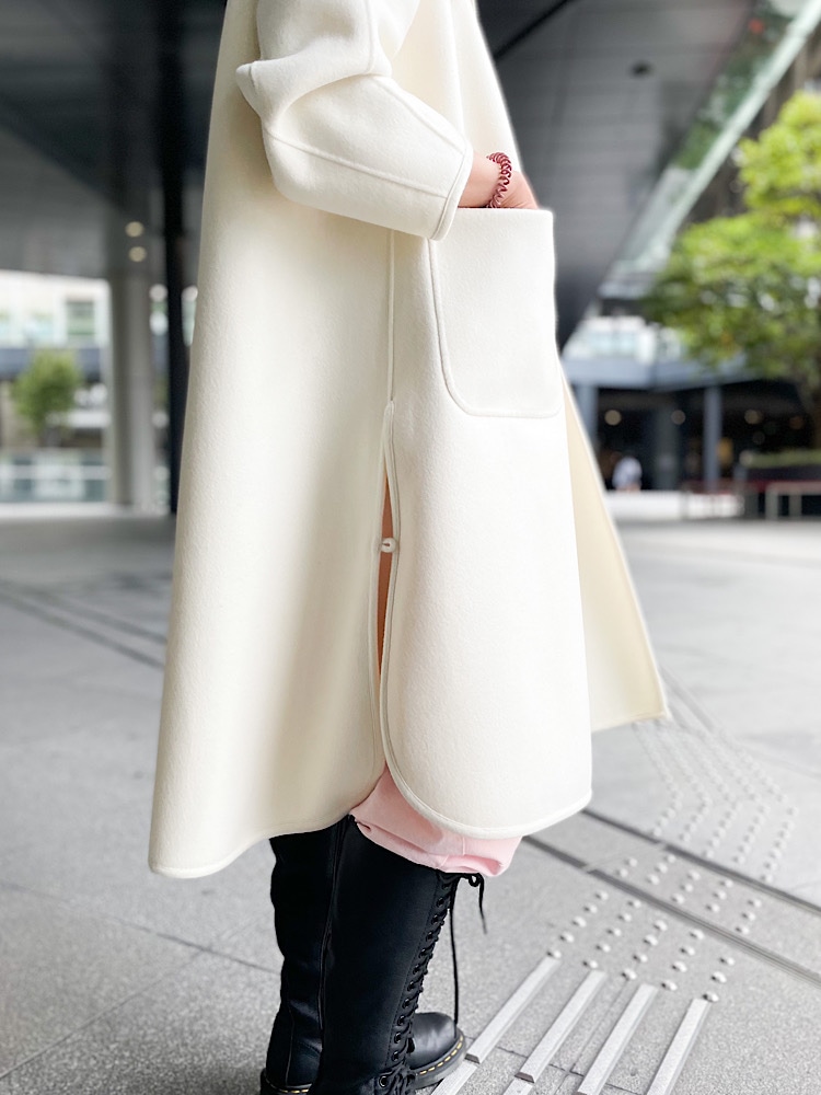 着こなしポイント: ノーカラーなのでトレンドのビッグカラーなどを覗かせると今年色に