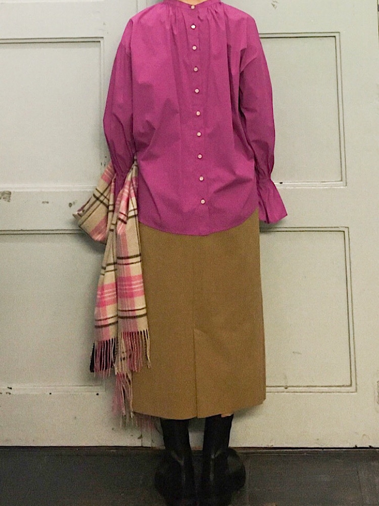 素材感・着心地:コットンにナイロンで張りとしなやかさのある素材。手首のゴムがきつ過ぎずストレスなく着ていただけます。