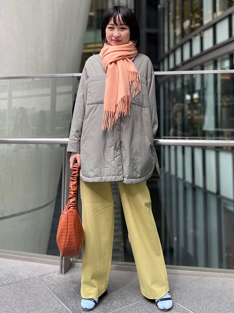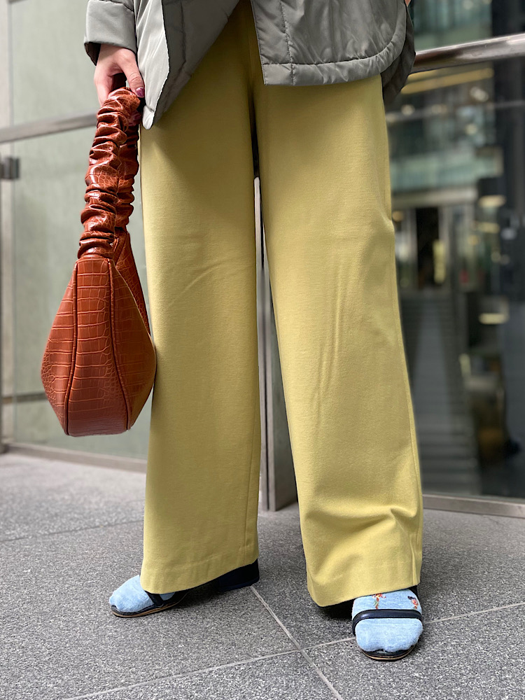 ・ストレートシルエットでワイドパンツでものっぺり見えない