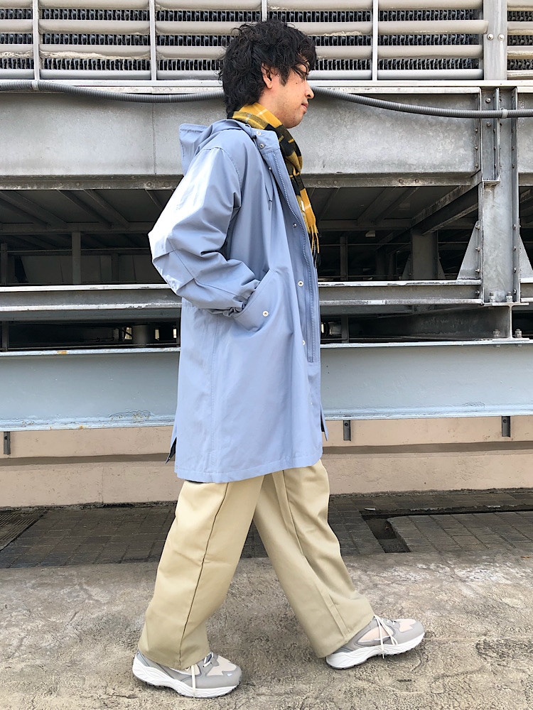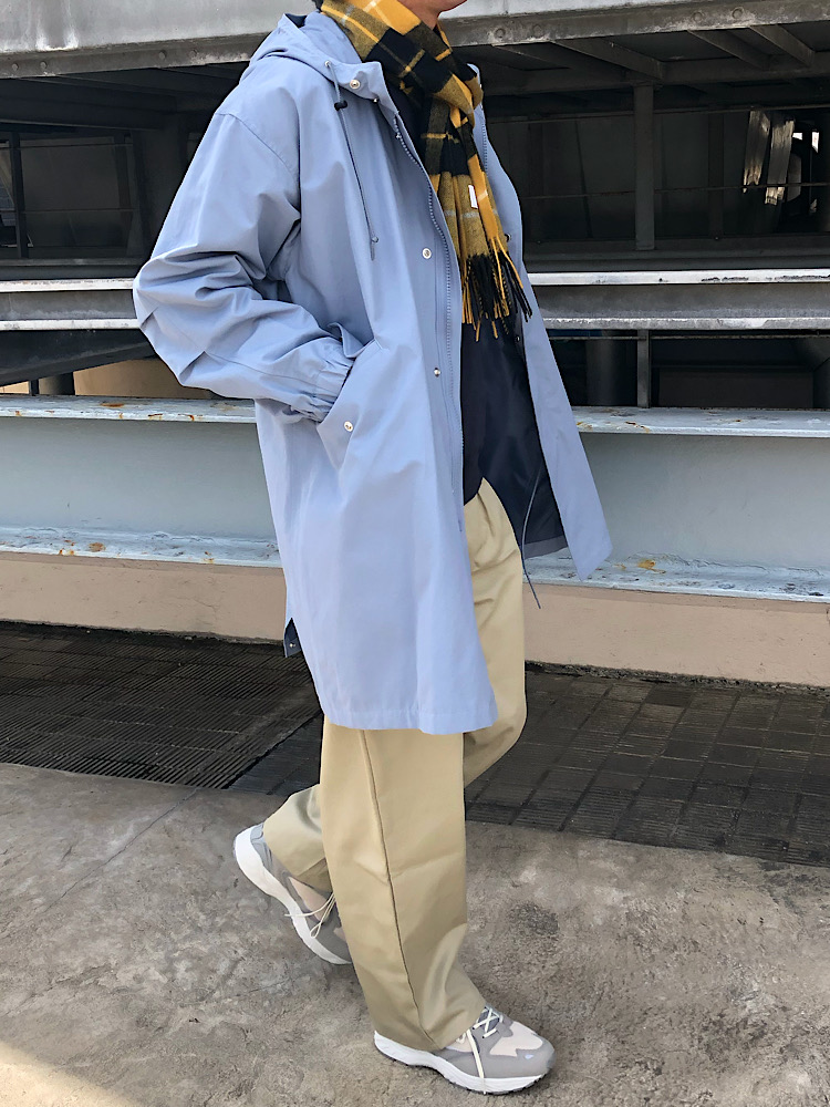 明るめなモッズコートをベースにベーシックなスウェットとワイドパンツを合わせて今っぽいシティボーイを意識しました!