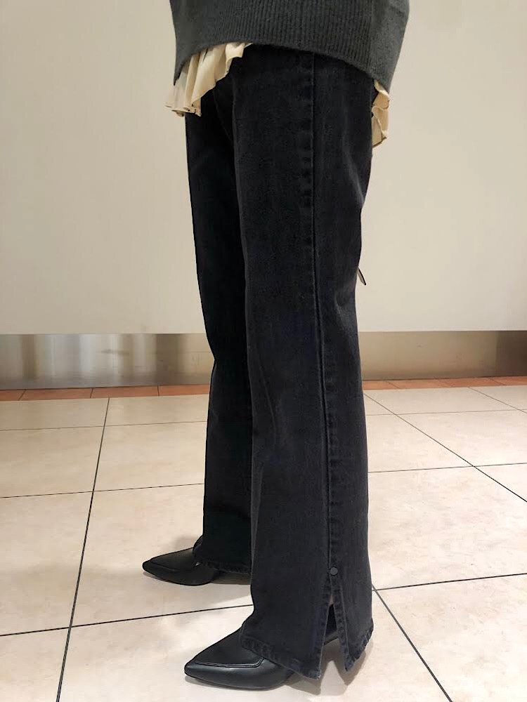 ◆0 x ones:ブラックデニムフレアヘムパンツ