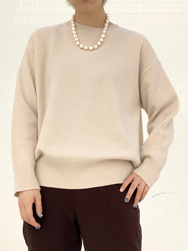 程よく肉厚なニットでしっかり暖かい。エアリーで軽い着心地。